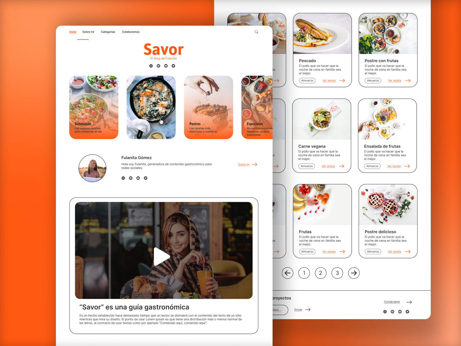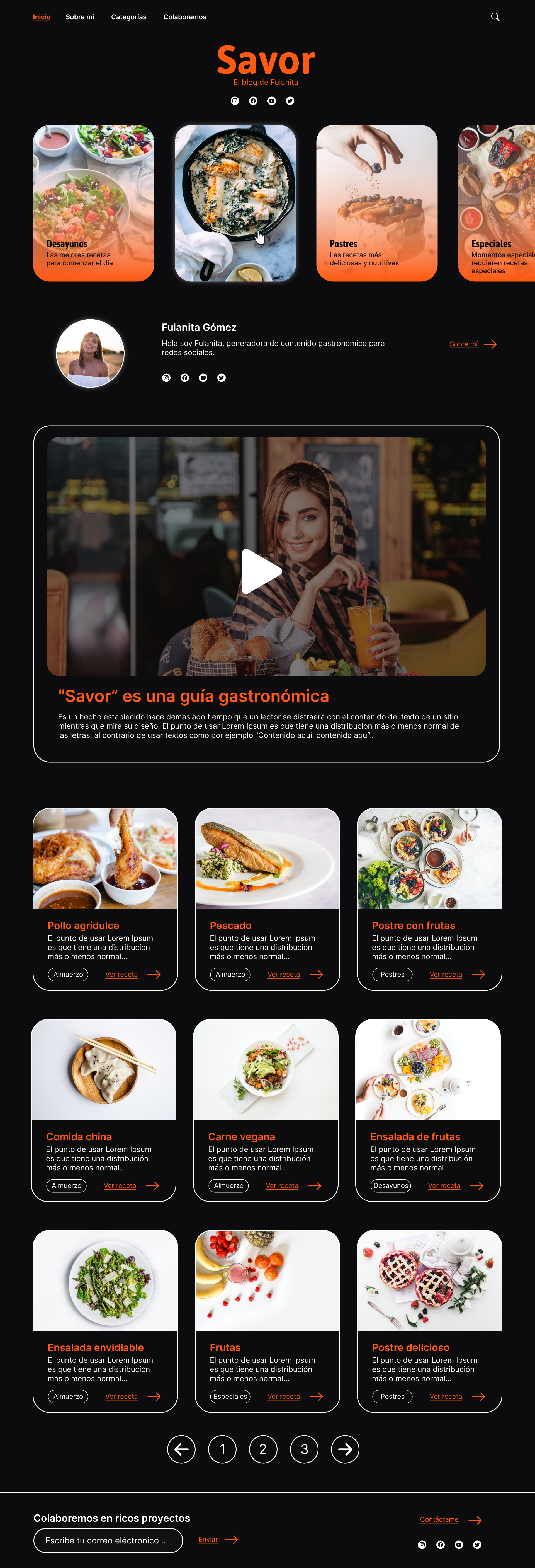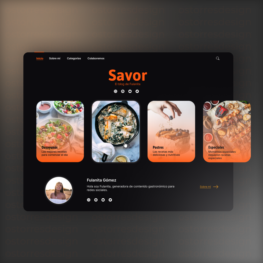 Savor es el nombre de una página web conceptual, que cree como prueba, para una blogger. Diseñe dos versiones de este sitio, en modo oscuro y claro.